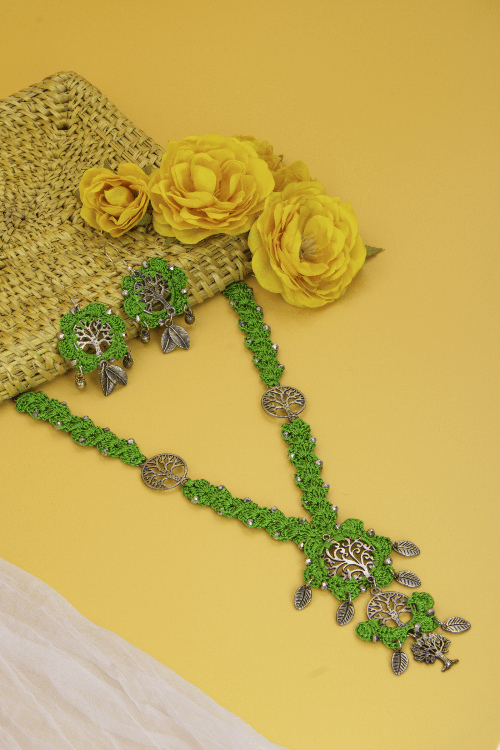 Our handcrafted crochet jewelry sets are designed for everyday use and made with care to ensure durability. They are partially water-resistant and gently washable, making them suitable for regular wear.