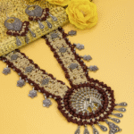 Be the first to review “Maroon and Yellow Crochet Necklace with Peacock and Floral Accents Handmade”
