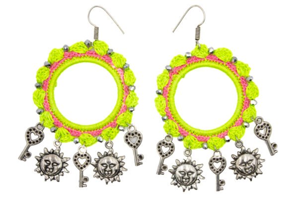 Neon Green & Pink Crochet Necklace Set with Butterfly and Key Charms