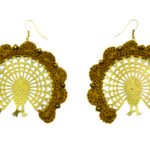These Golden Plumage Peacock Earrings feature a brass peacock base with intricate crochet detailing in a rich mustard hue. The soft threadwork surrounds the brass fan, giving it a majestic and traditional look—perfect for festive occasions or adding a graceful ethnic touch to your outfit.
