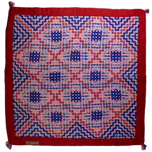 Be the first to review “Peach‑Navy Orb Quilt with Red Frame Handmade”