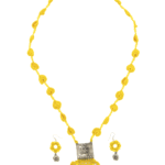 Be the first to review “Yellow Crochet Necklace Set with Tribal Square Pendant Handmade”